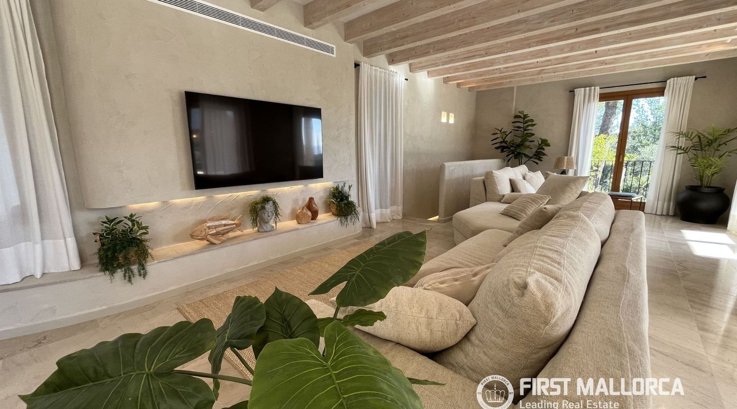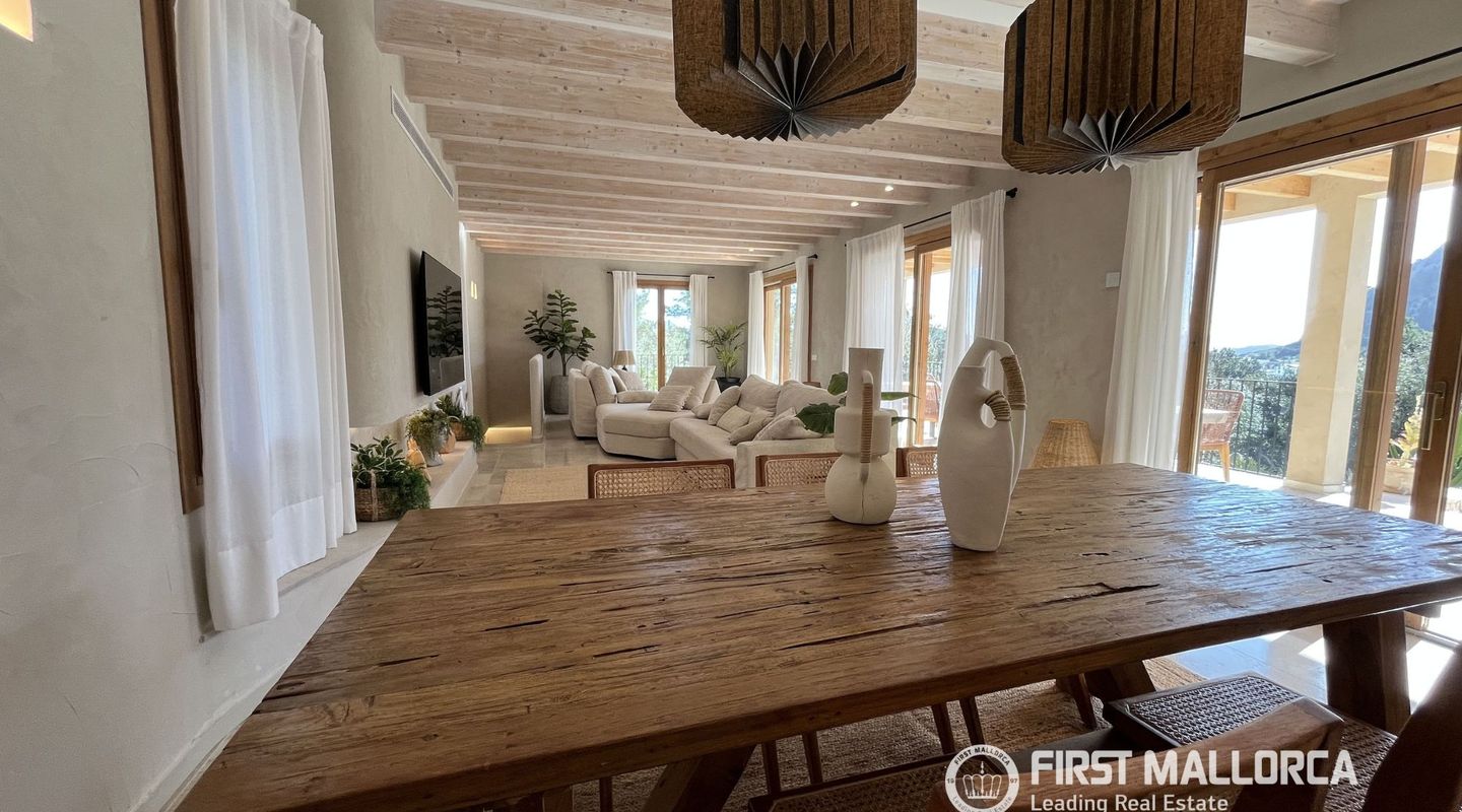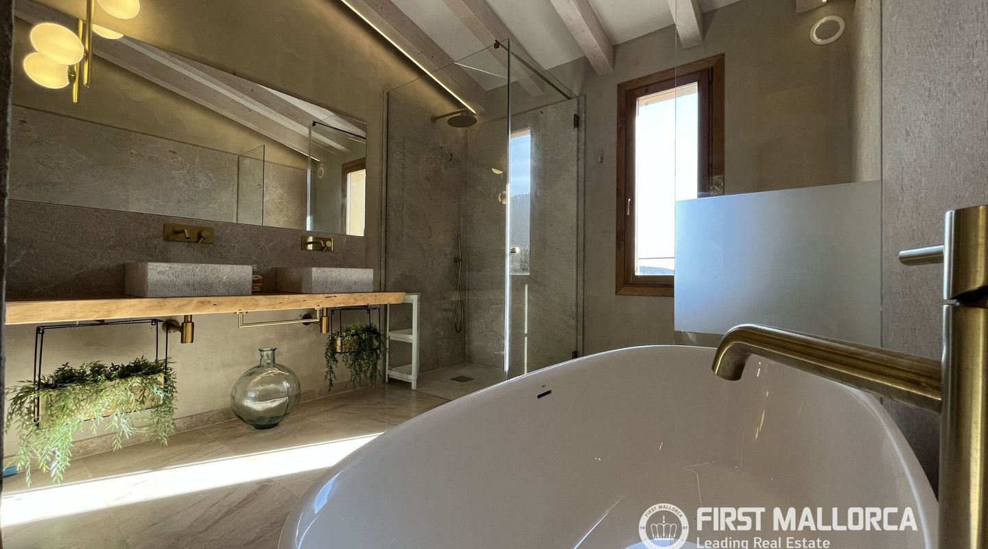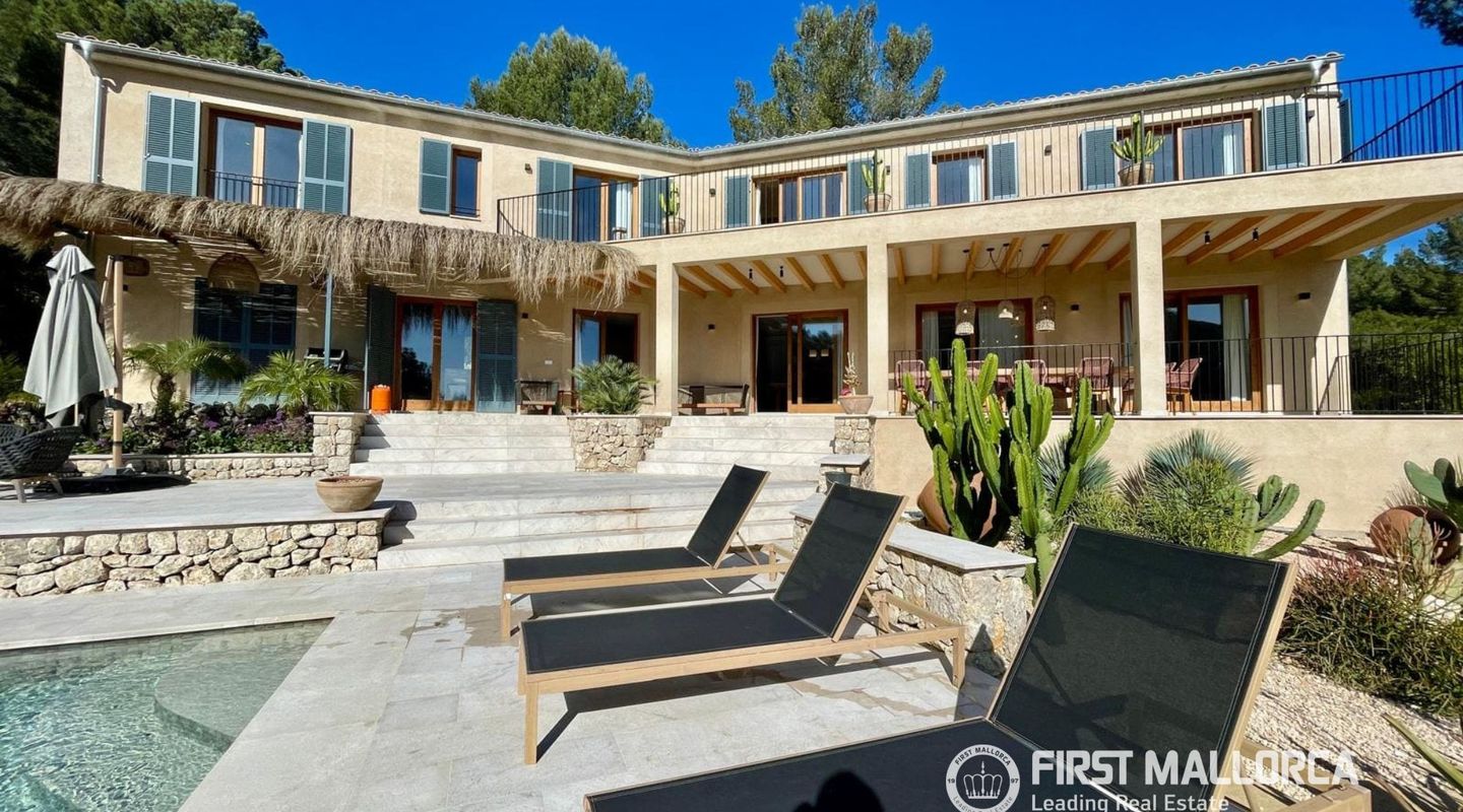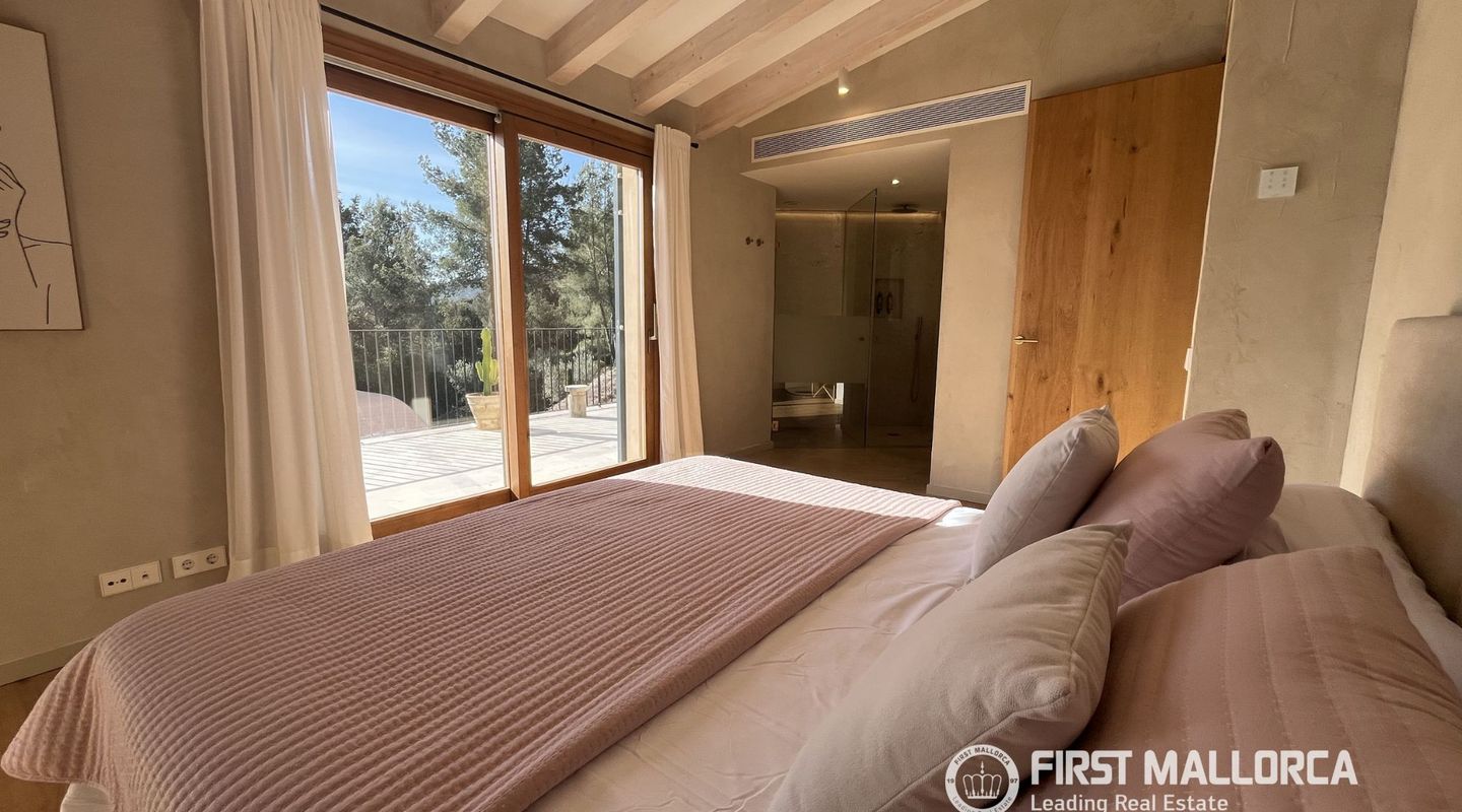 Vi presenterar denna exklusiva lyxfinca belägen i ett upphöjt och privilegierat läge i Pollença, en sann oas av elegans som erbjuder en imponerande panoramautsikt över den pittoreska byn och delvis havsutsikt mot den vackra bukten Puerto de Pollença. Denna unika egendom utmärker sig för högsta kvalitet på materialen och en arkitektonisk design som perfekt kombinerar traditionell medelhavscharm med modernaste komfort. I dess noggrant utformade interiör har hemmet skapats för att garantera maximalt välbefinnande och vila, och erbjuder tre rymliga och ljusa dubbelrum som har tre kompletta badrum en-suite, vilket ger total integritet och sofistikering för hela familjen och dess gäster.