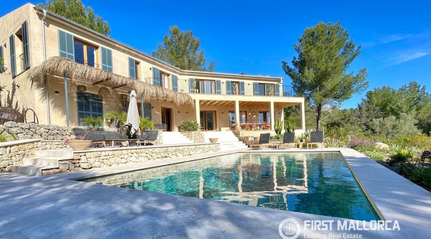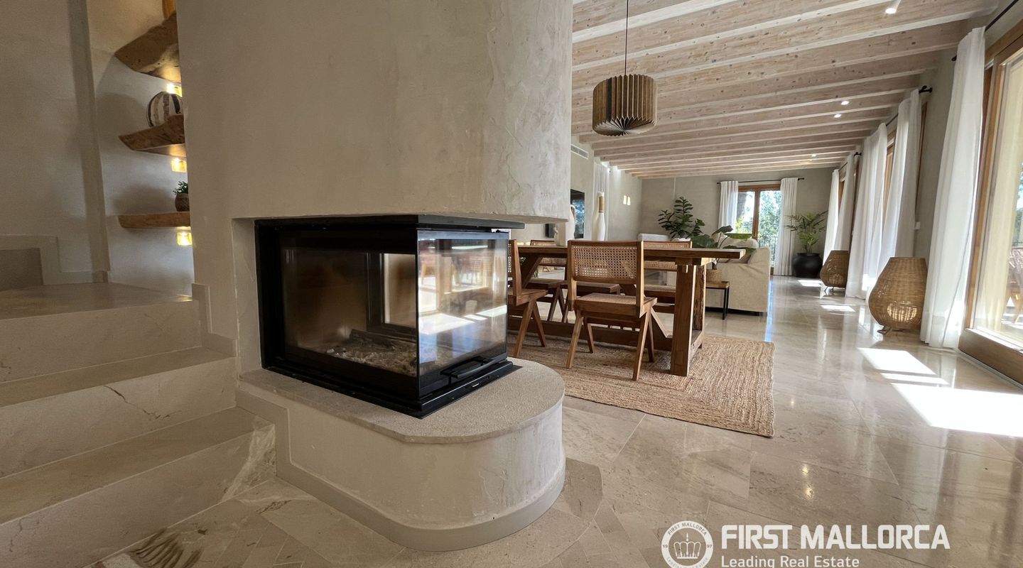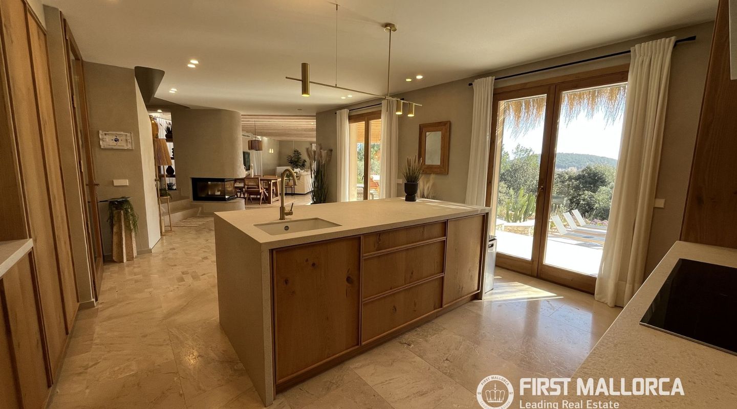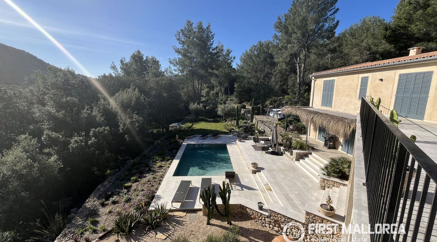 Vi presenterar denna exklusiva lyxfinca belägen i ett upphöjt och privilegierat läge i Pollença, en sann oas av elegans som erbjuder en imponerande panoramautsikt över den pittoreska byn och delvis havsutsikt mot den vackra bukten Puerto de Pollença. Denna unika egendom utmärker sig för högsta kvalitet på materialen och en arkitektonisk design som perfekt kombinerar traditionell medelhavscharm med modernaste komfort. I dess noggrant utformade interiör har hemmet skapats för att garantera maximalt välbefinnande och vila, och erbjuder tre rymliga och ljusa dubbelrum som har tre kompletta badrum en-suite, vilket ger total integritet och sofistikering för hela familjen och dess gäster.