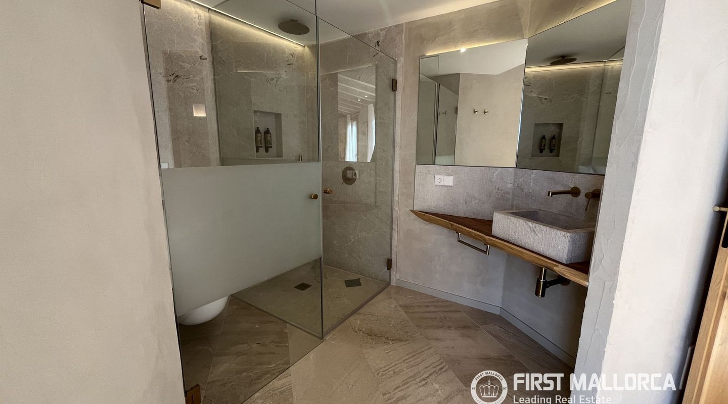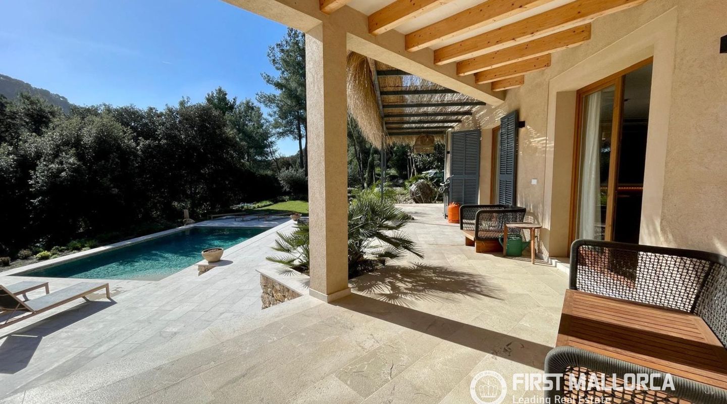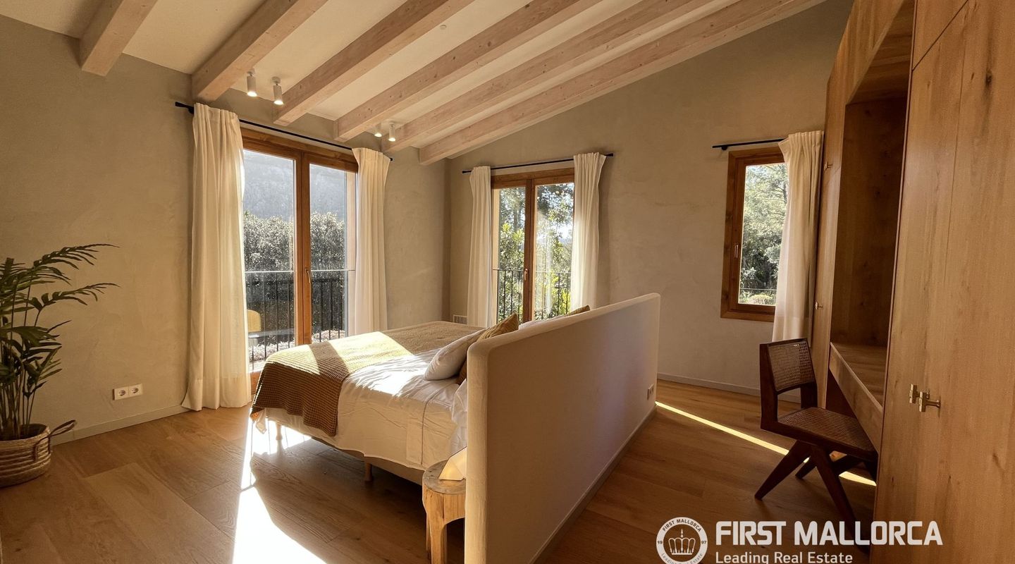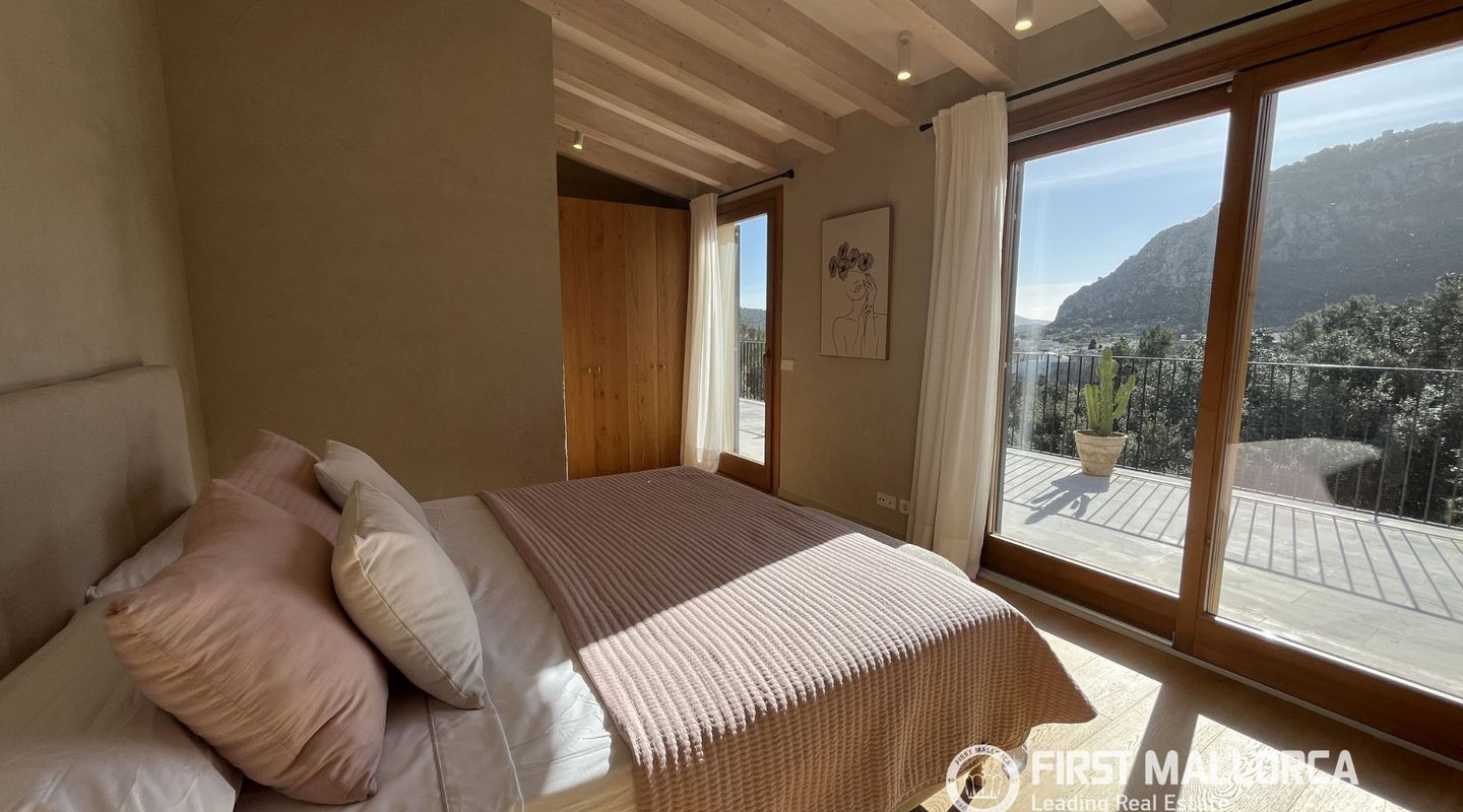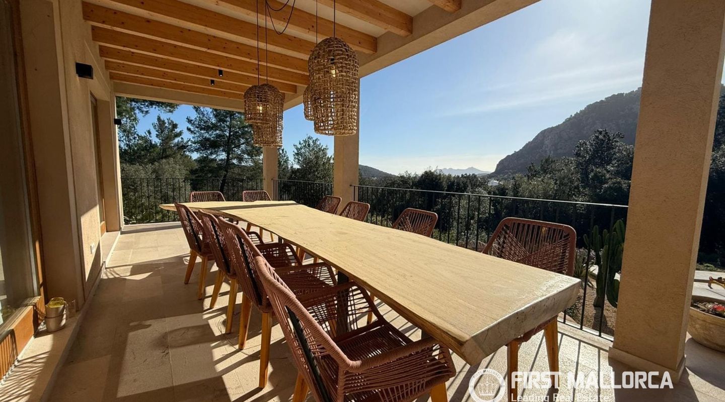 Vi presenterar denna exklusiva lyxfinca belägen i ett upphöjt och privilegierat läge i Pollença, en sann oas av elegans som erbjuder en imponerande panoramautsikt över den pittoreska byn och delvis havsutsikt mot den vackra bukten Puerto de Pollença. Denna unika egendom utmärker sig för högsta kvalitet på materialen och en arkitektonisk design som perfekt kombinerar traditionell medelhavscharm med modernaste komfort. I dess noggrant utformade interiör har hemmet skapats för att garantera maximalt välbefinnande och vila, och erbjuder tre rymliga och ljusa dubbelrum som har tre kompletta badrum en-suite, vilket ger total integritet och sofistikering för hela familjen och dess gäster.